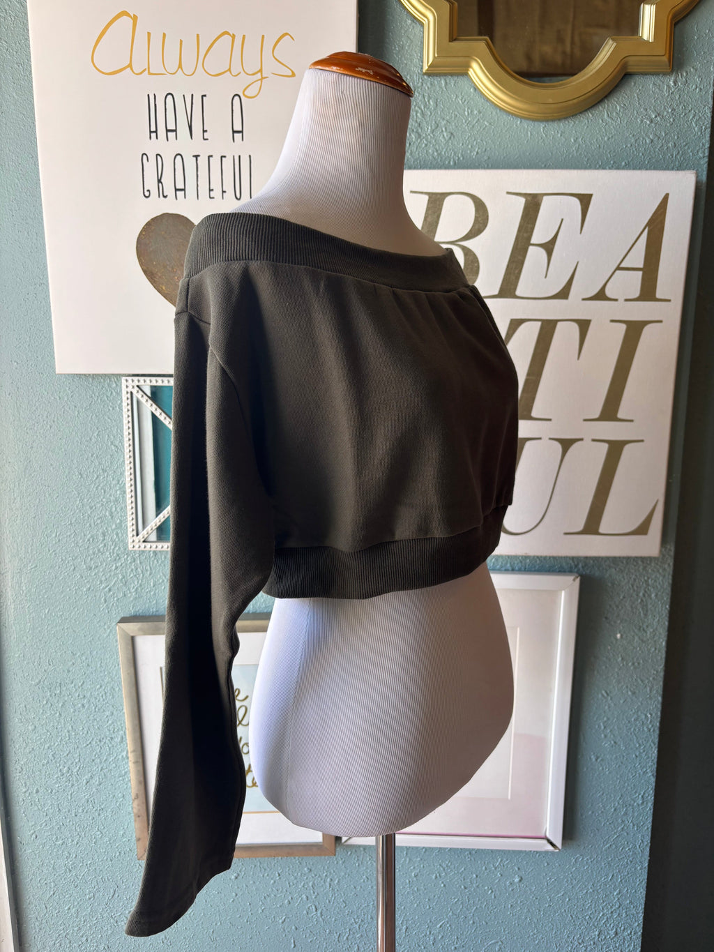 Olivaceous Off the shoulder crop olive green