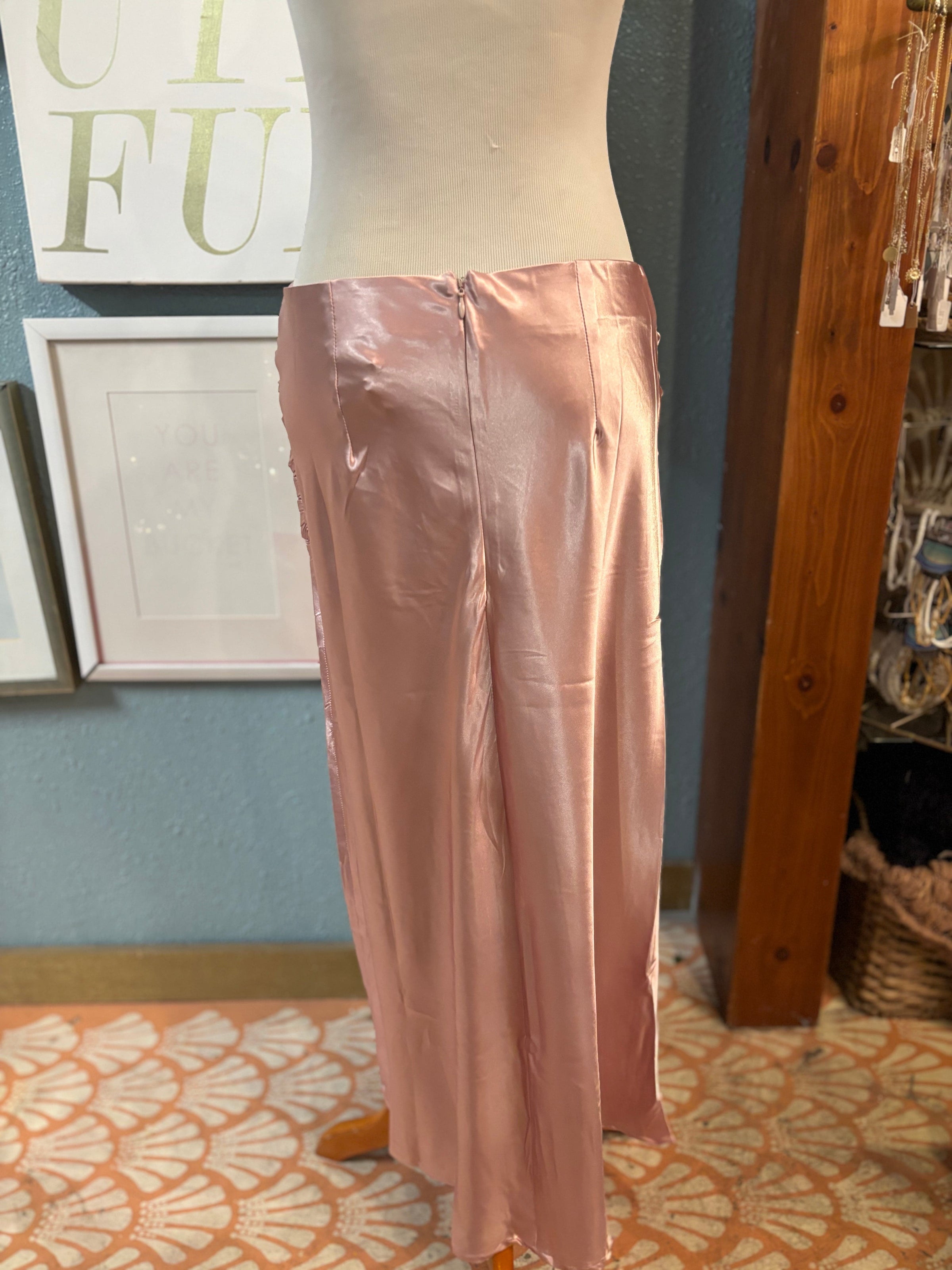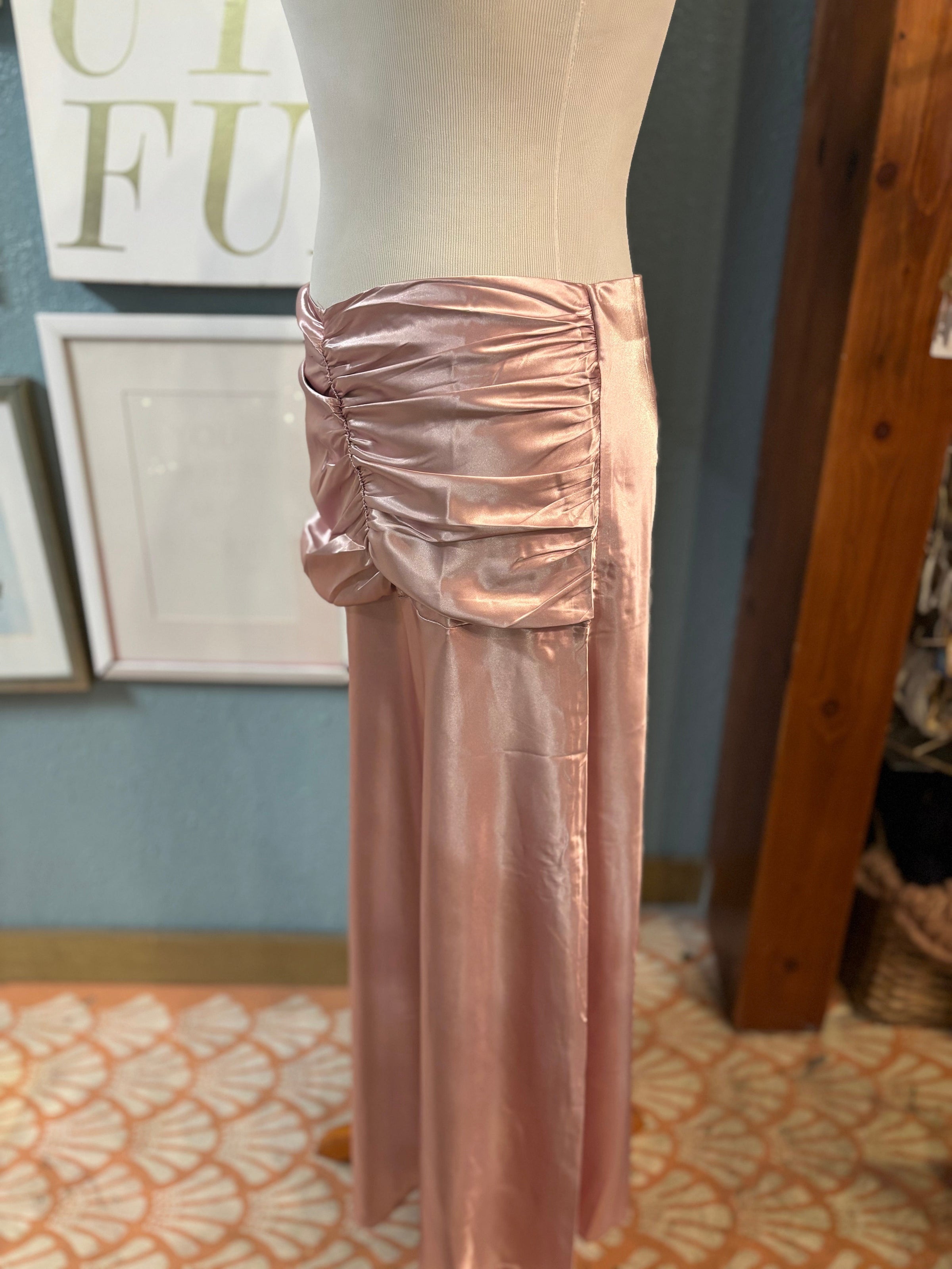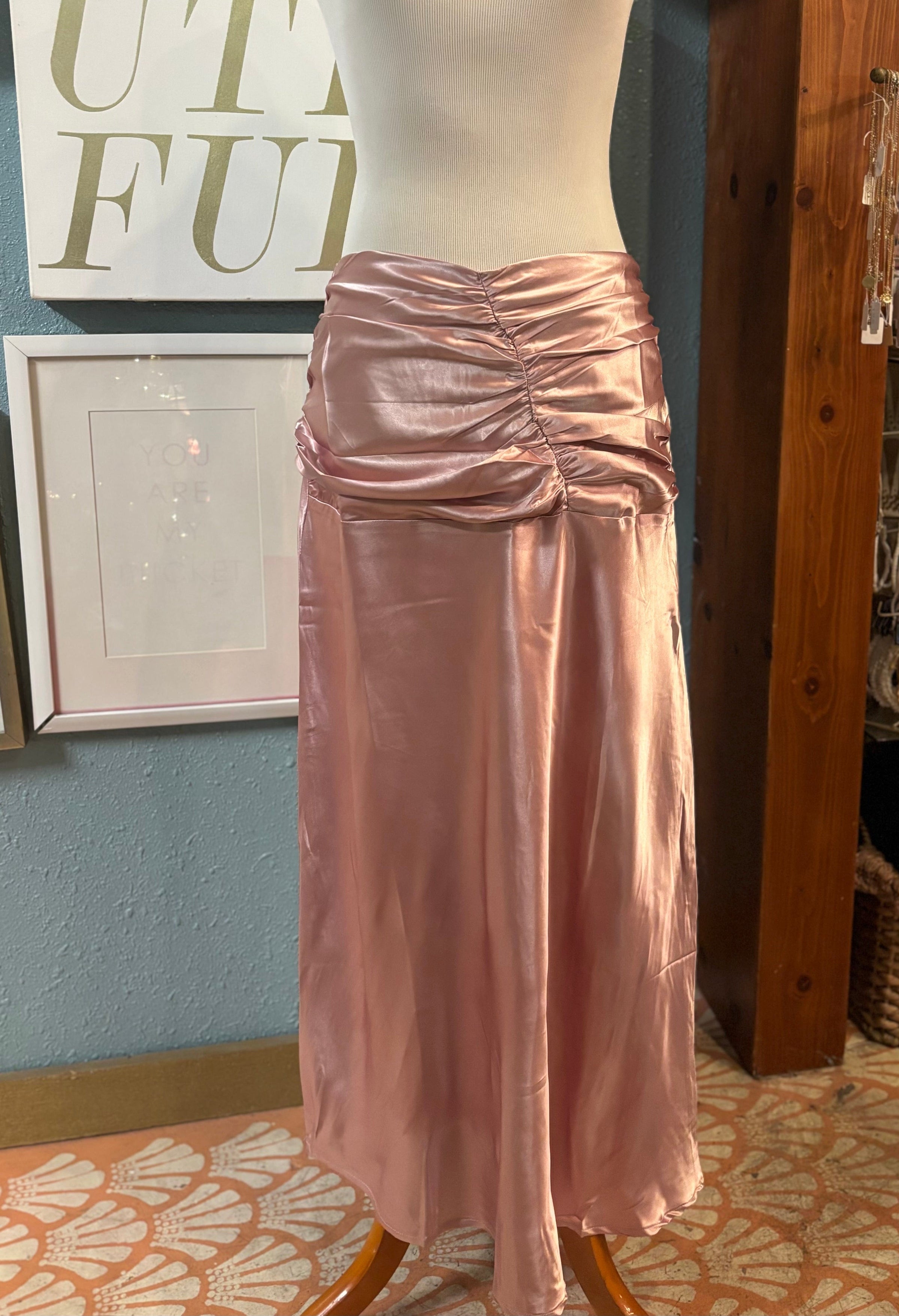 L Love pink ruched satin long skirt