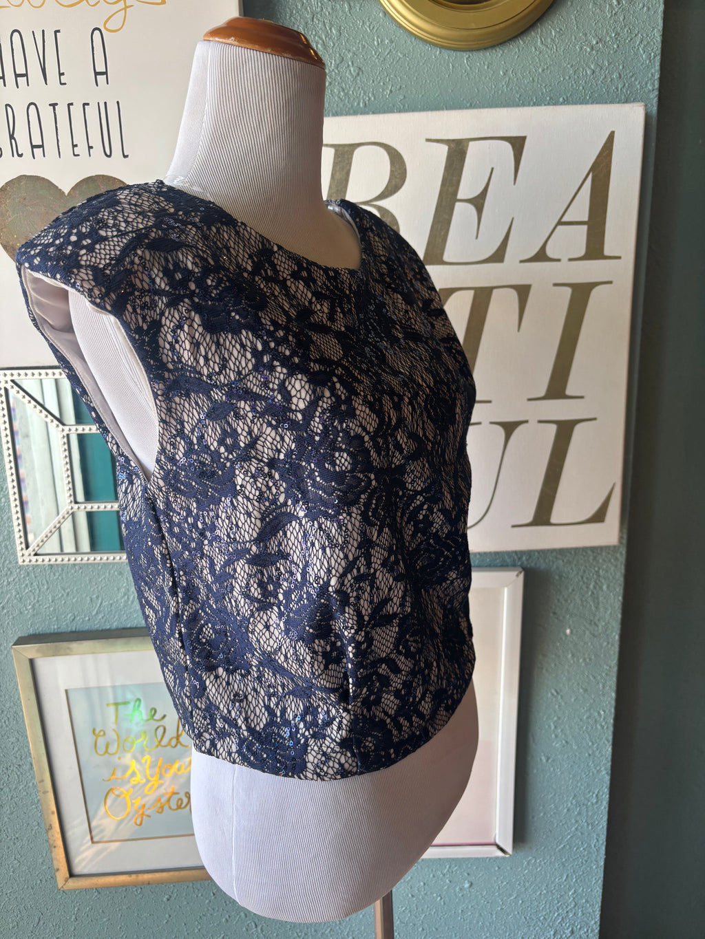 Westmoon sequenced lace navy blue top ( shoulder padded)