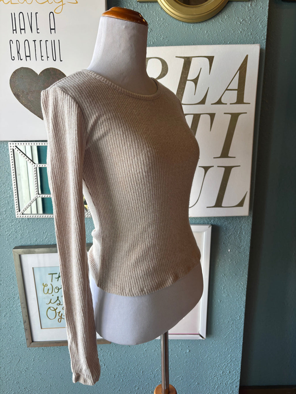 Knit riot cream long sleeve ribbed top