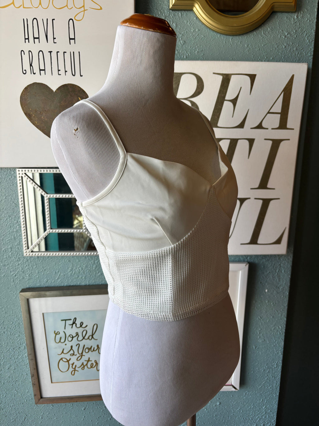 Lelis white netted tank top