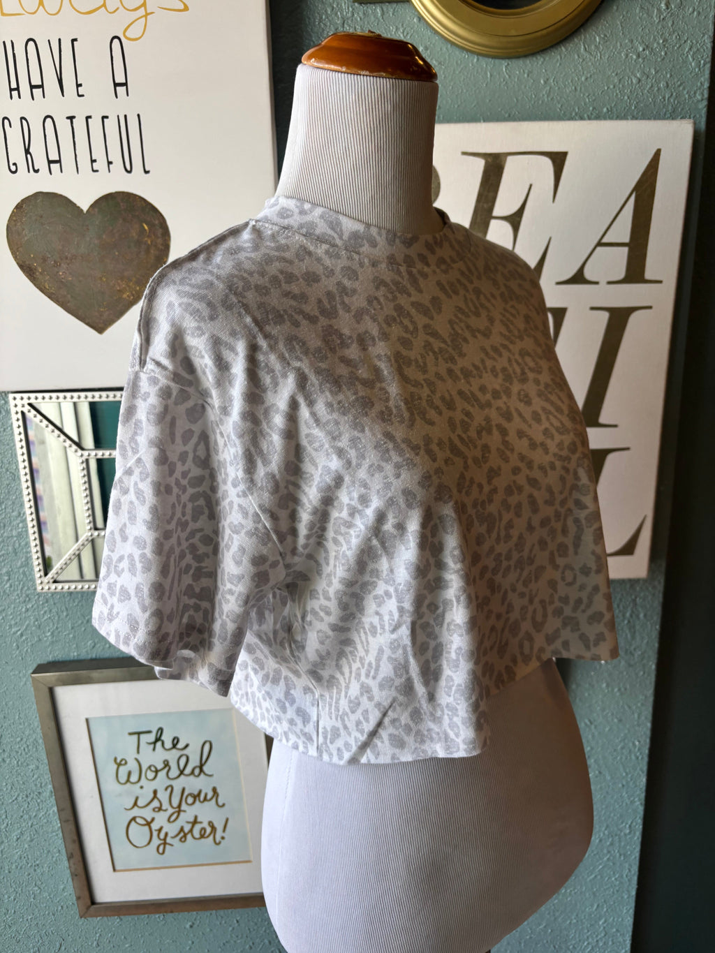 Olivceous white leopard print crop top